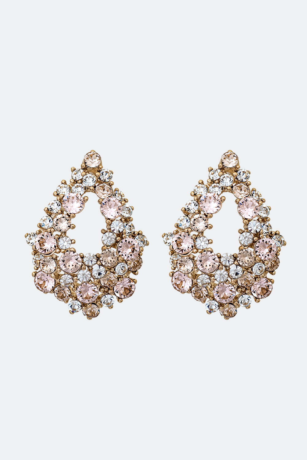 Alice-øredobber med mangefasetterte champagnefargede Swarovski-krystaller som reflekterer lyset på en vakker måte. Innfattet i gull. Bruk dem for å gi hverdagsantrekket en elegant look.