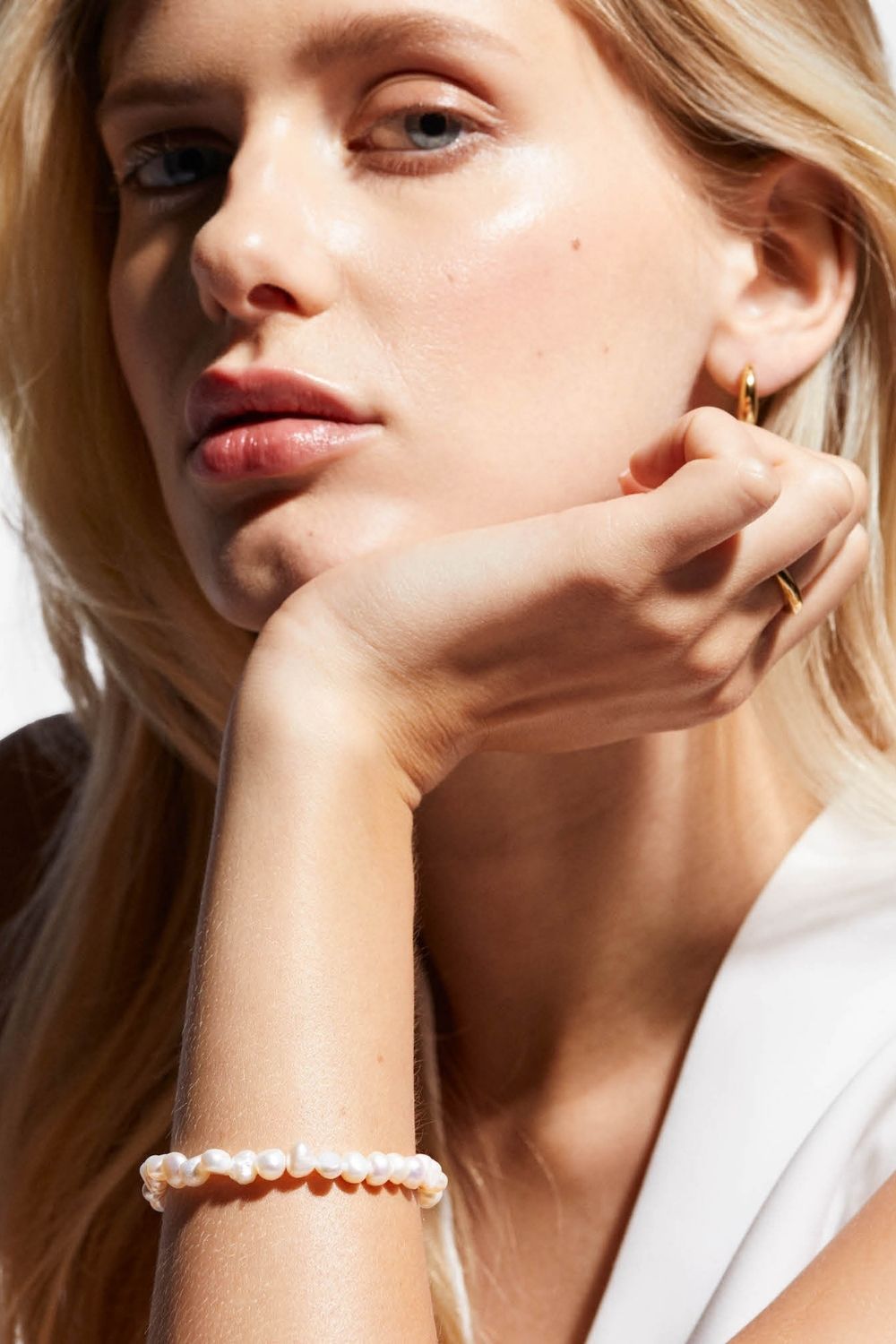 Perlearmbånd med ekte ferskvannsperler. Hver perle har sin unike form, farge og størrelse. Det betyr at dine perlesmykker kan være litt forskjellig fra dem du ser på produktbildene. Låsen er laget av ekte sterlingsølv 925, forgylt med ekte 18k gull