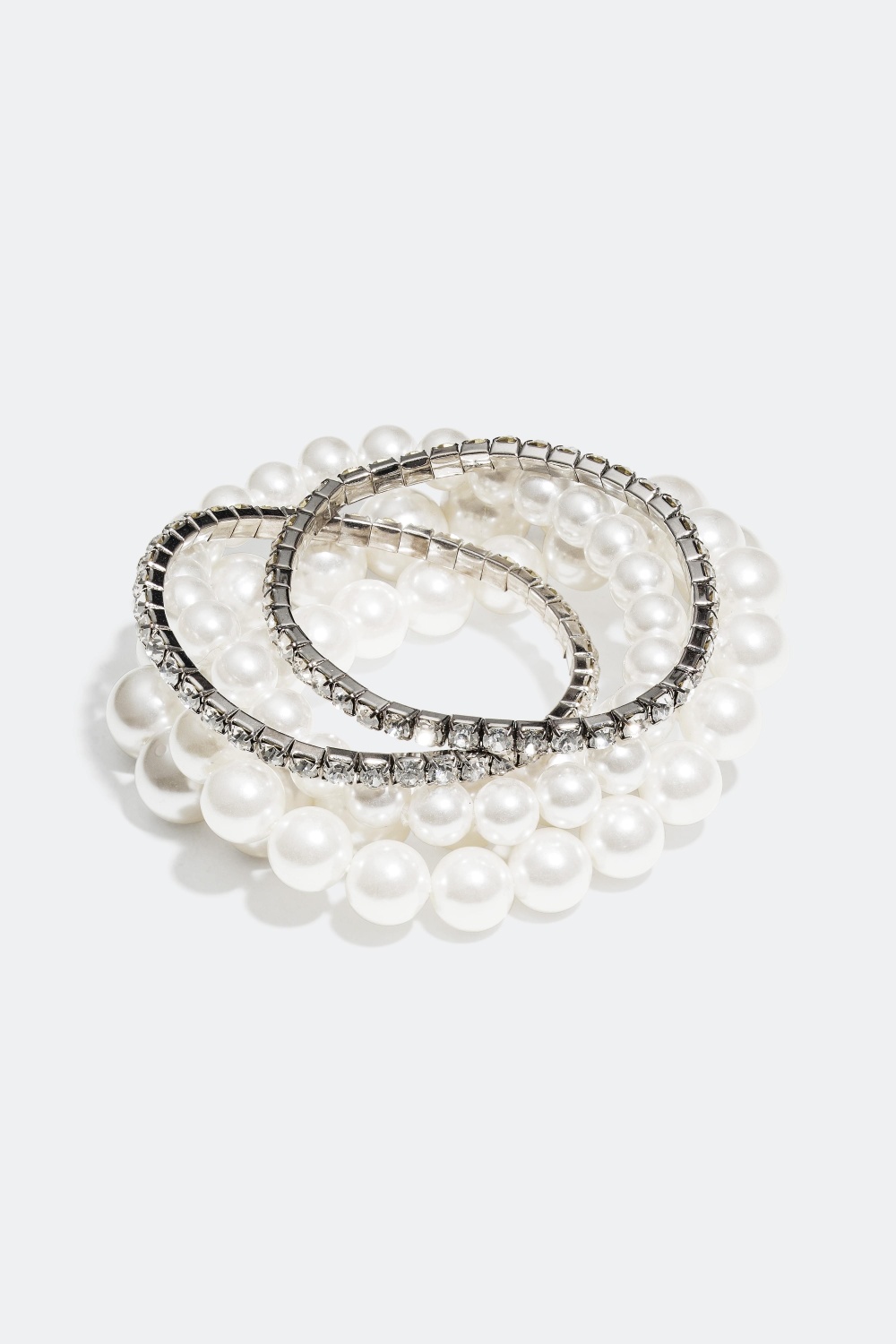 Armbånd 5pk - Fem stykk fine elastiske armbånd. Tre av de har plastperler og de to andre har strass stener.