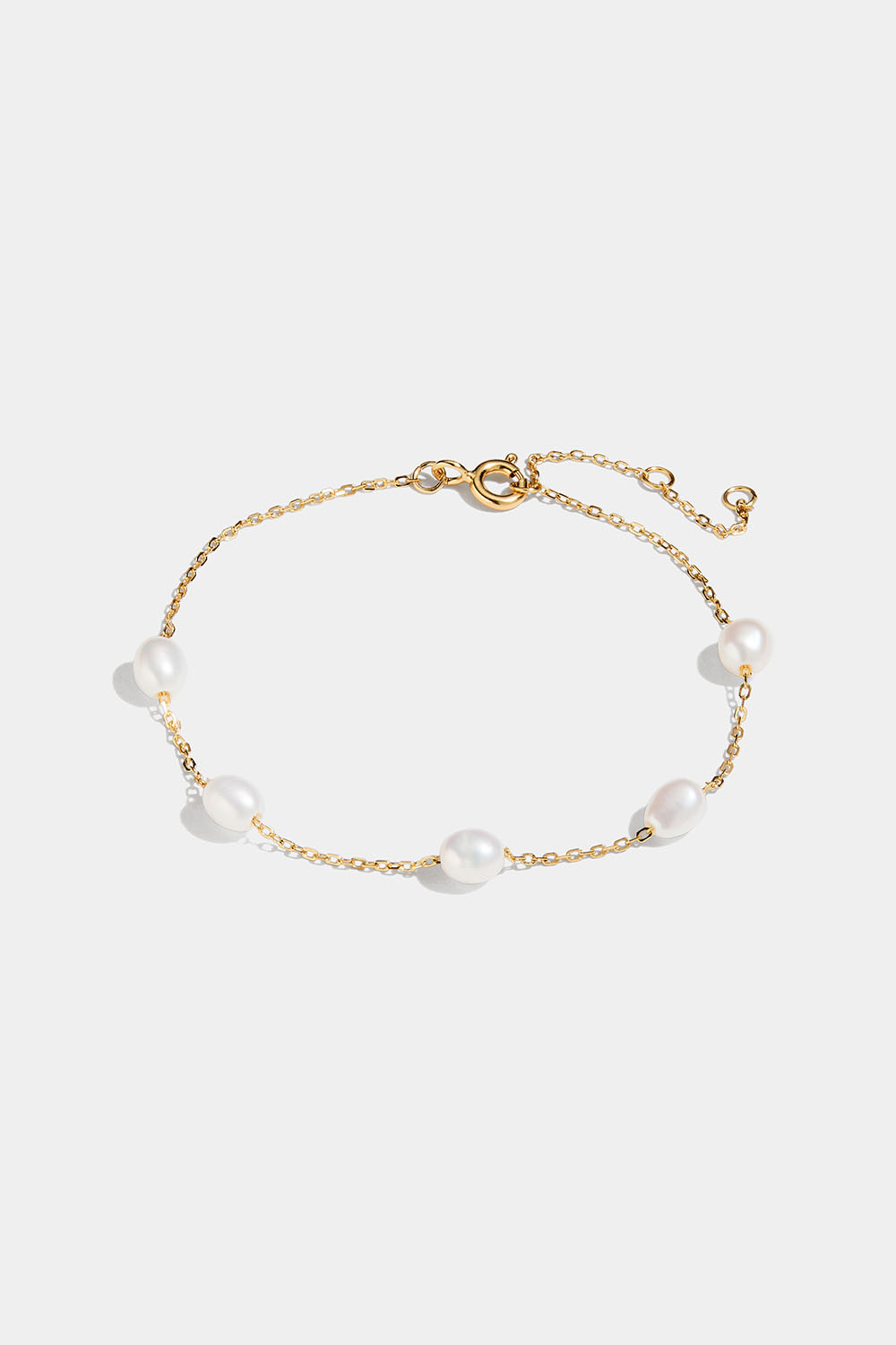 Armbånd i 18 k forgylt ekte sølv med fem ferskvannsperler.