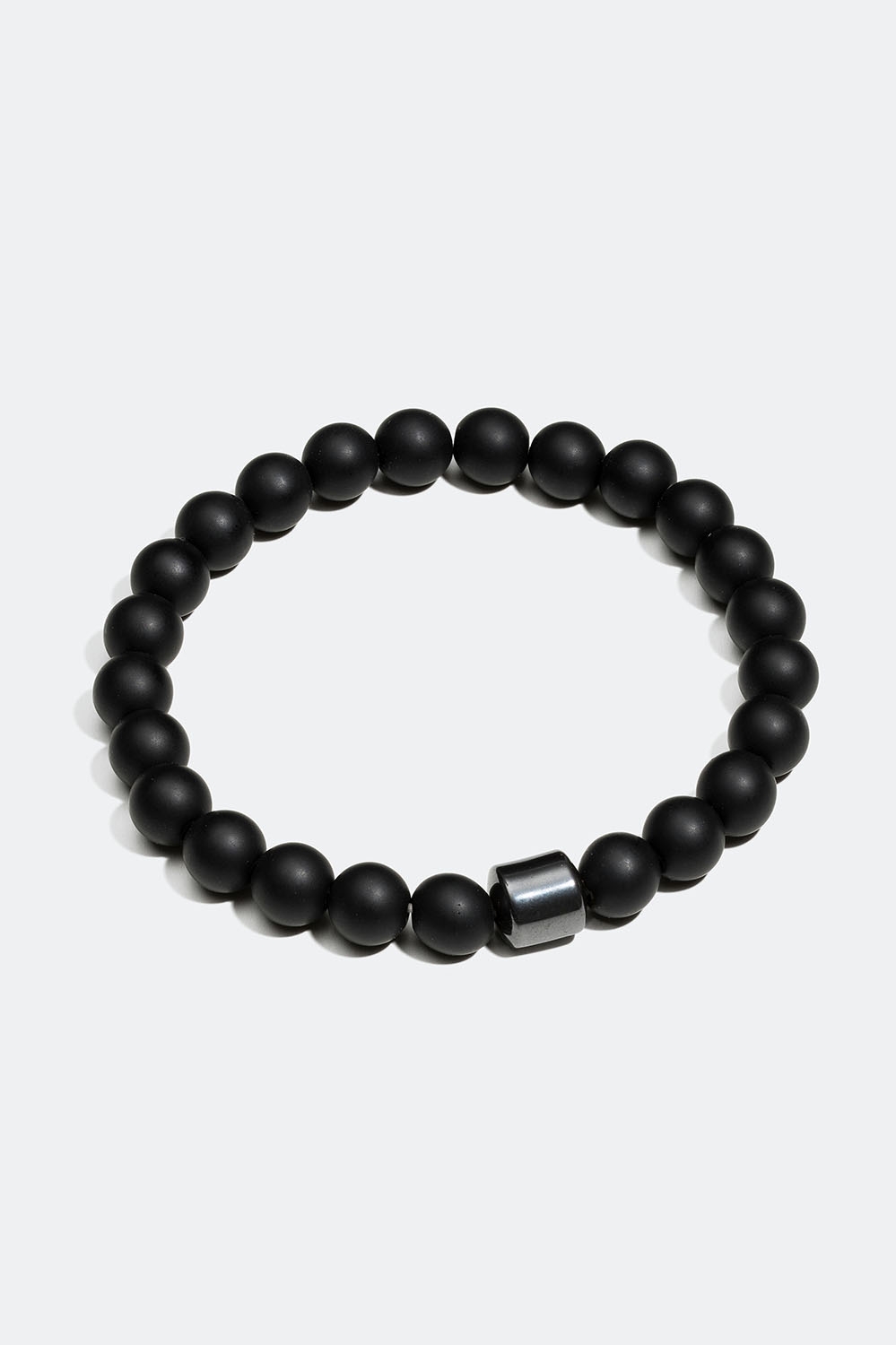 Elastisk armbånd med runde natursteiner i 'black onyx' og en perledetalj i mørkt metall. Et stilig armbånd som du perfekt kan kombinere med flere armbånd.
