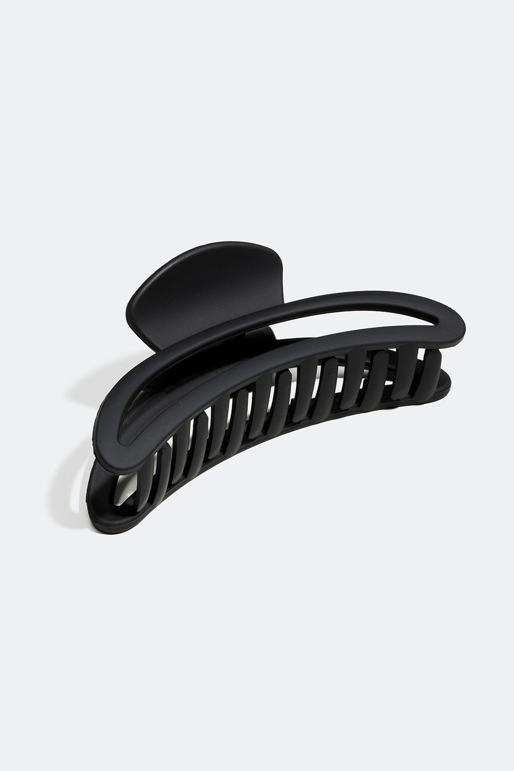 Svart hårklemme med avlang design og lett bøyd form. Hårklemmen har en ekstra utskjæring som gir den en mer detaljert profil. Et stilrent hårtilbehør for en rask og skånsom oppsetning.