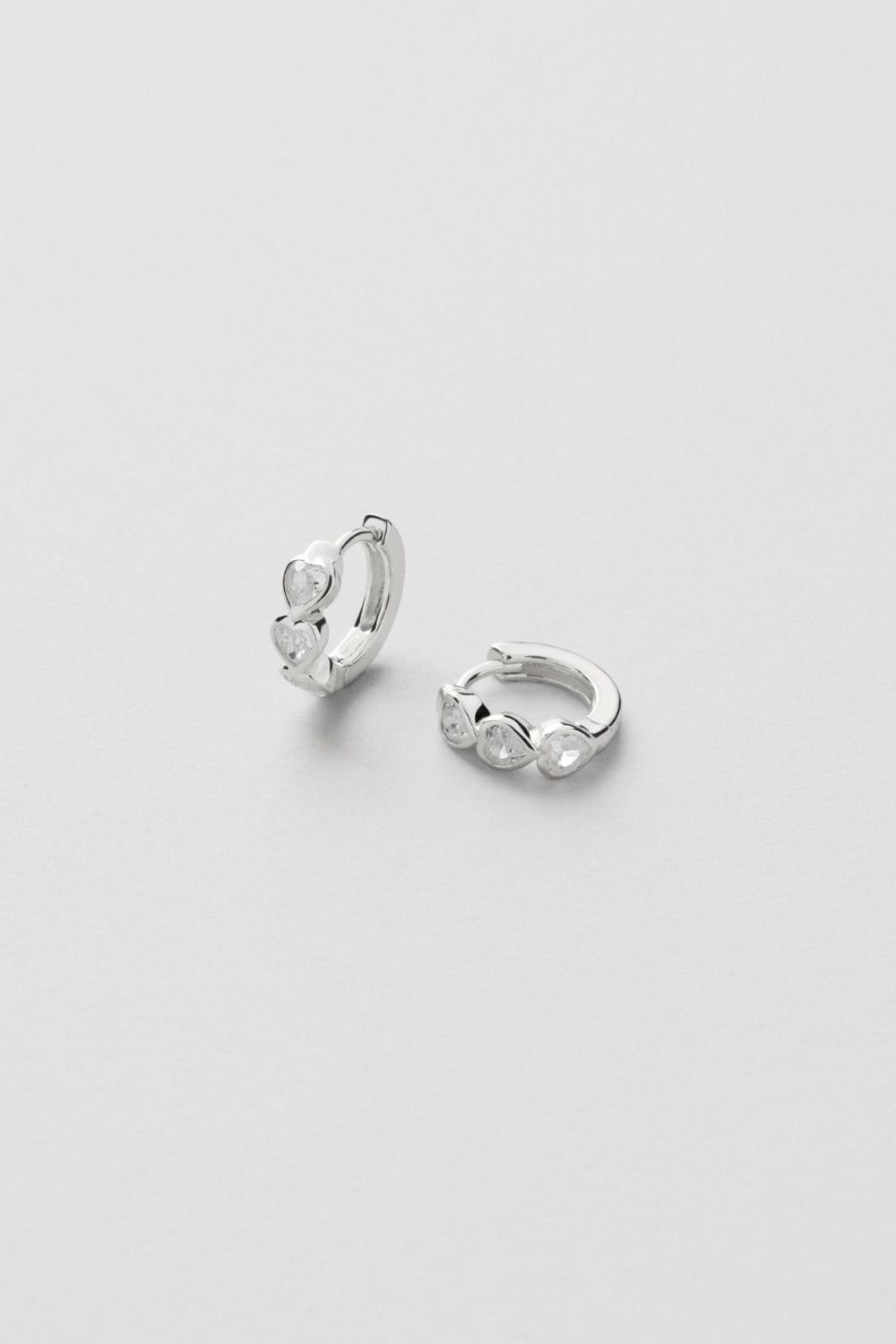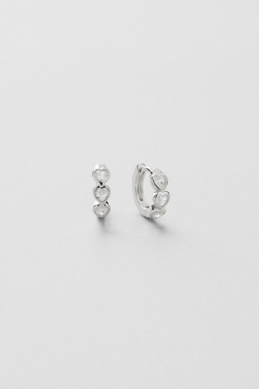 Huggie hoops-øredobber med hjerteformede, klare Cubic Zirconia-stener i bezelinnfatning i ekte sterlingsølv 925.