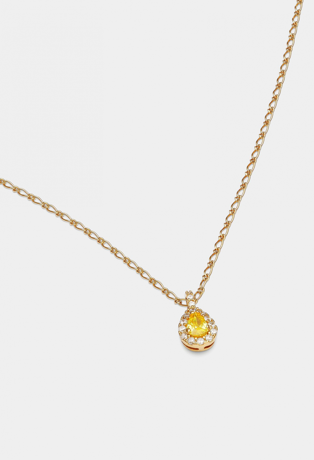 Bianca halskjede er et fengslende smykke med den fantastiske pæreformede gule krystallen som ligger i et luksuriøst, forgylt bånd. Dette halskjedet kombinerer eleganse og moderne raffinement slik at den er perfekt til både hverdagsbruk og spesielle anledninger.