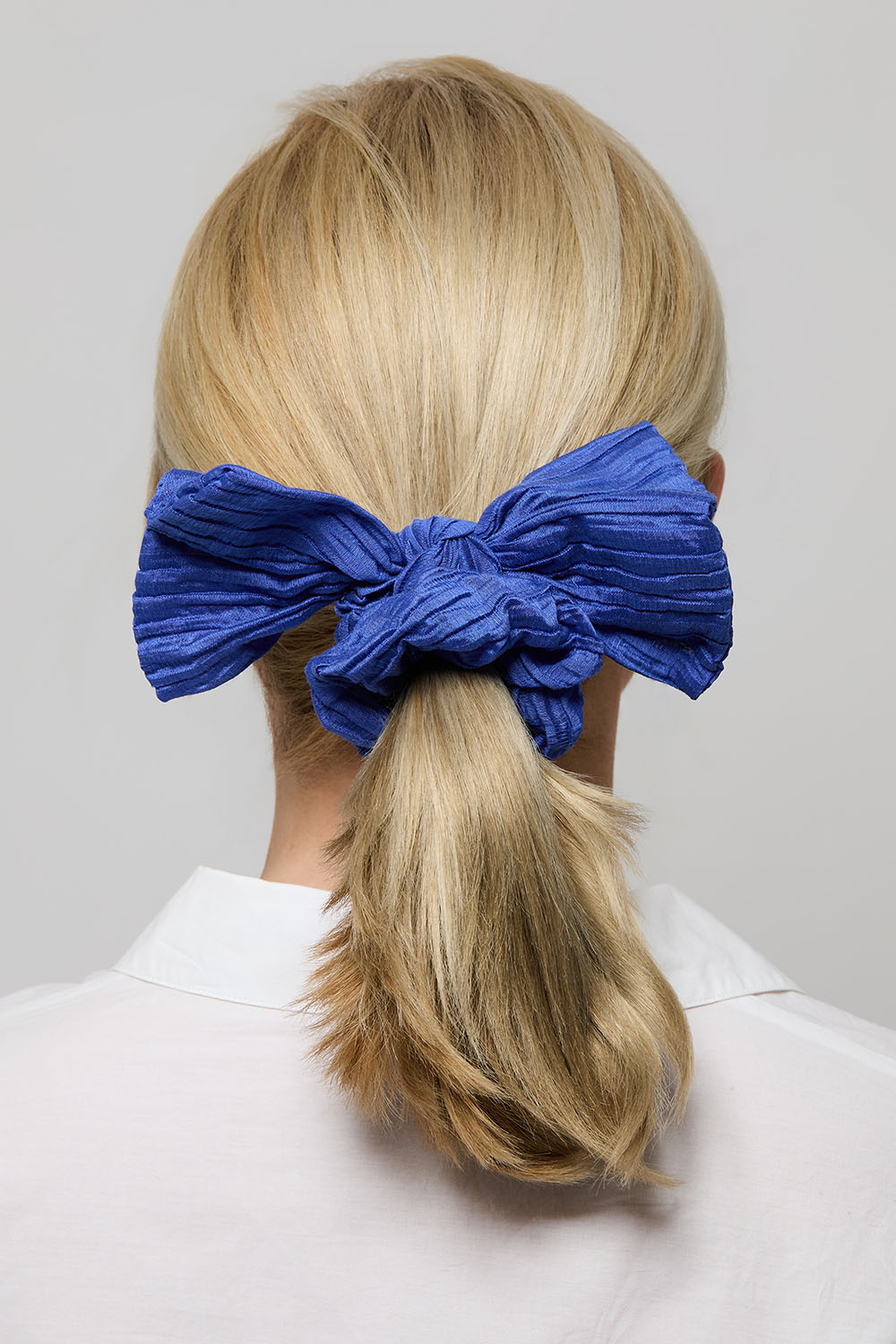 Blå plissert hårstrikk med sløyfe i gruppen Håraccessories / Scrunchies hos Glitter (332002097200)