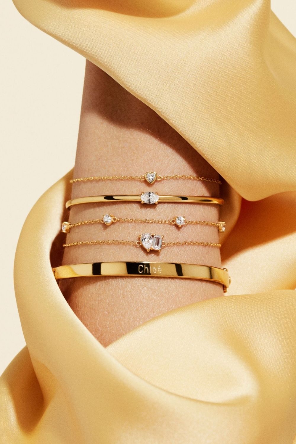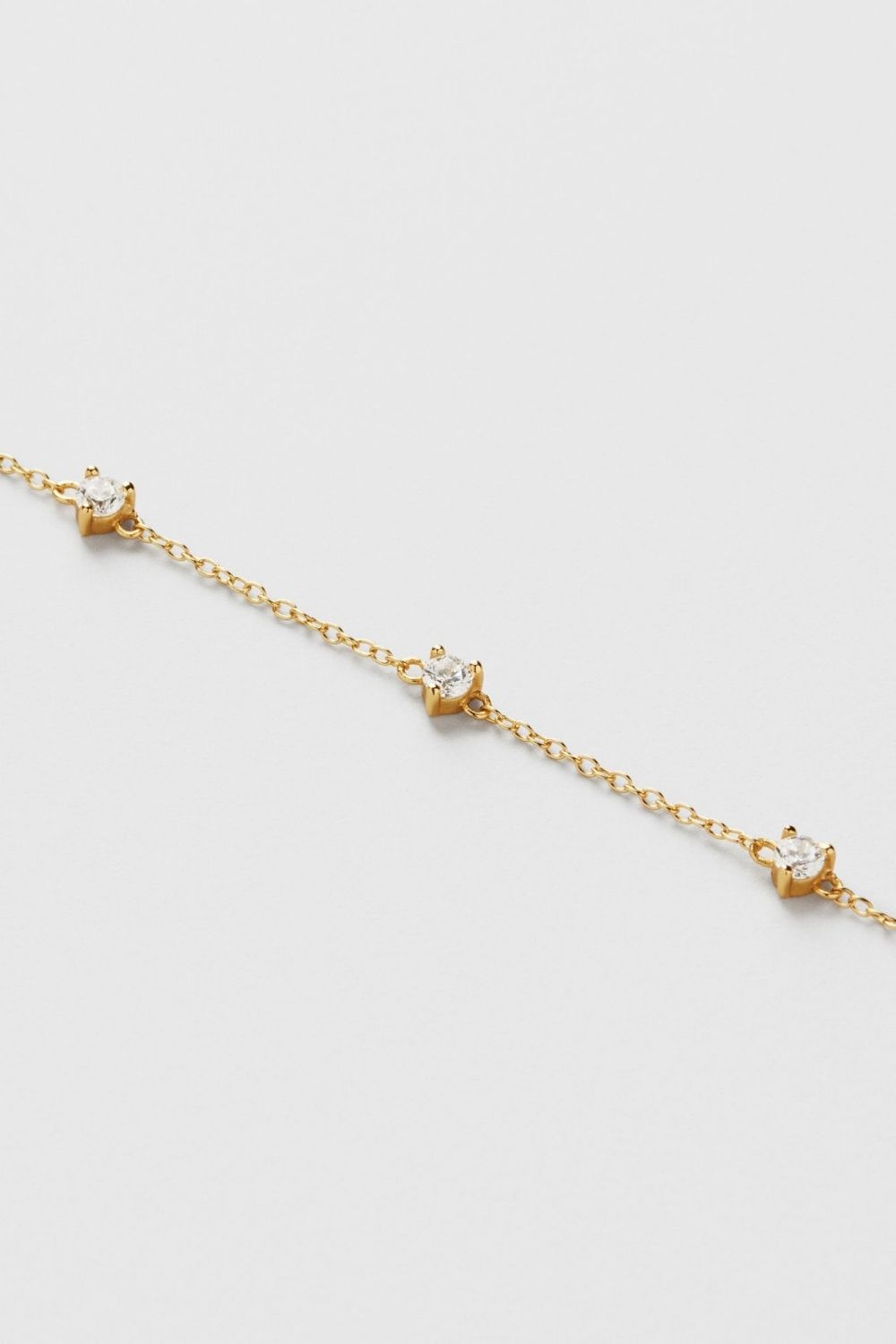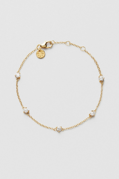 Armbånd pyntet med fem, klare Cubic Zirkonia-stener, forgylt med ekte 18k gull og med en kjerne av ekte sterlingsølv 925.