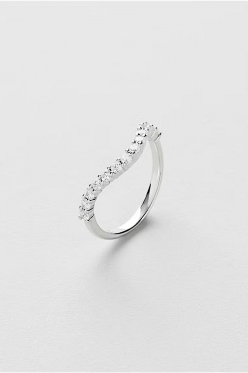 Ring i bølgedesign i ekte sterlingsølv 925, pyntet med klare Cubic Zirconia-stener.