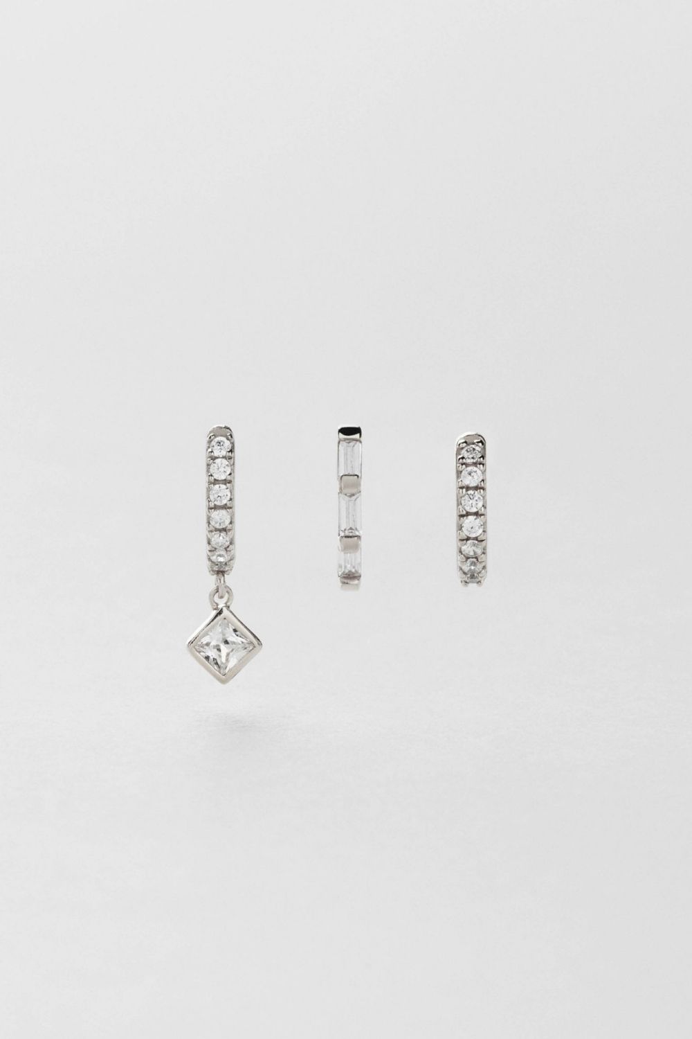 3-pakning med singel-øredobber i ekte sterlingsølv 925, pyntet med klare Cubic Zirconia-stener i ulike former.