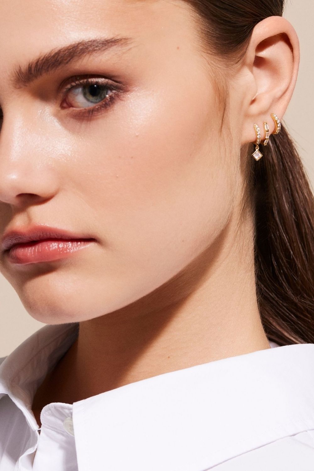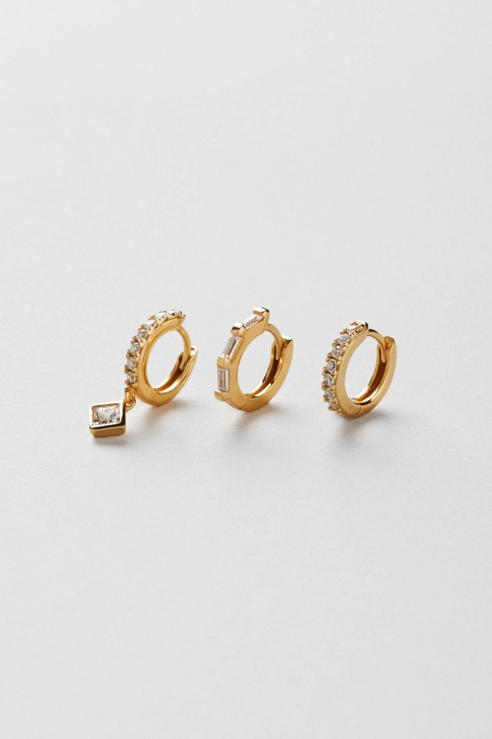 3-pakning med singel-øredobber pyntet med klare Cubic Zirconia-stener i ulike former, forgylt med ekte 18k gull og med en kjerne av ekte sterlingsølv 925.