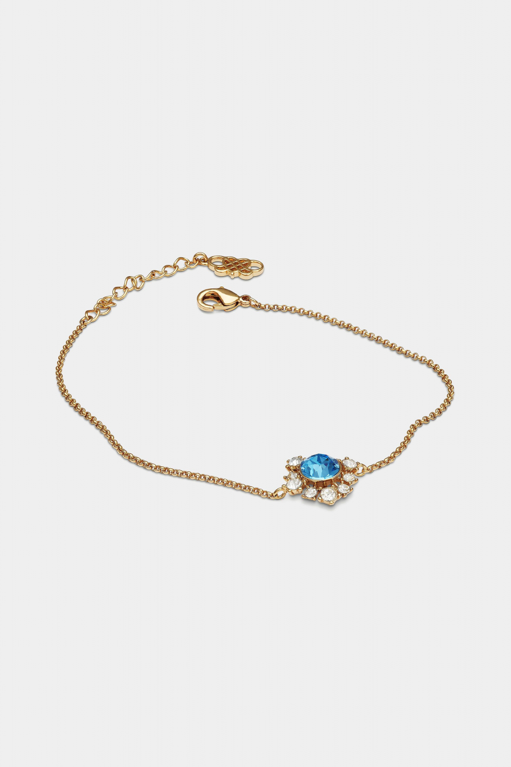 Emily armbånd gløder av lys med sin fantastiske isblå stein, og ved hjelp av mindre, klare krystaller dannes det en nydelig komposisjon. Gjør looken komplett med andre produkter fra Emily-kolleksjonen.