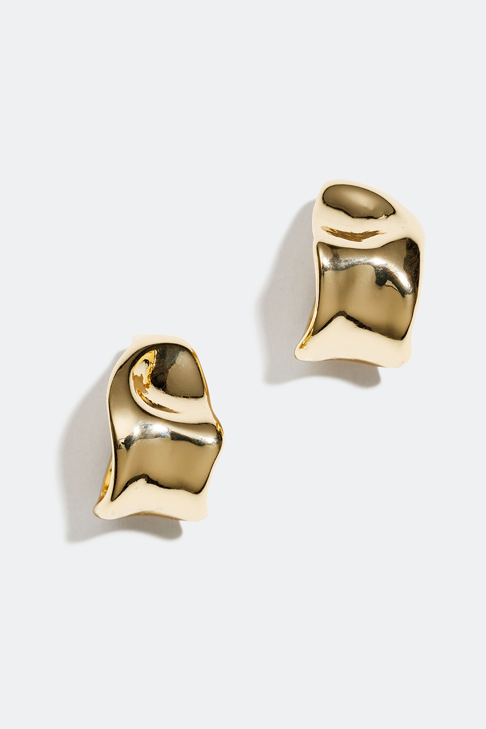 Brede, ovale bøyler i gullfarget metall i organisk design. Et par skulpturelle øreringer med spennende form, som raskt kommer til å bli en favoritt i smykkesamlingen.