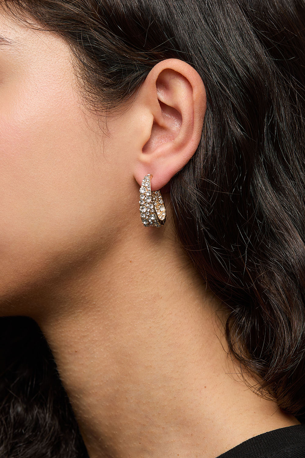 Hoops i gullfarget metall dekorert med små hvite glassteiner i ulike størrelser.