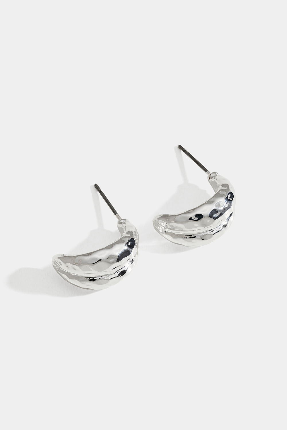 Små, brede sølvfargede hoops med hamret tekstur.