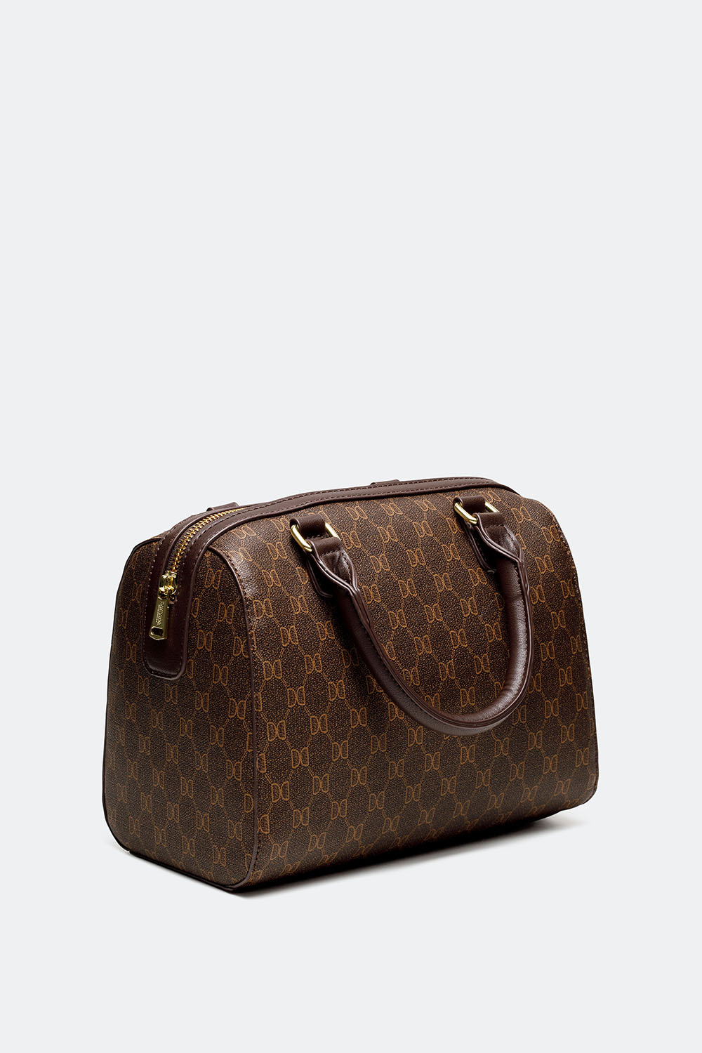 Brun veske med en trykt Don Donna-logo. En stilig veske som kommer med to håndtak og en avtakbar skulderstropp. Vesken har et større rom som lukkes med glidelås og to små rom innvendig. Perfekt hverdagsveske til jobb og på en dagstur til byen. Skulderremmen er avtakbar og justerbar, slik at vesken kan bæres over skulderen og som crossbody.