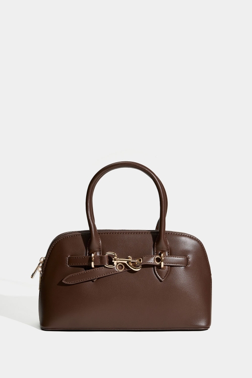 Brun håndveske med rem og låsdetalj