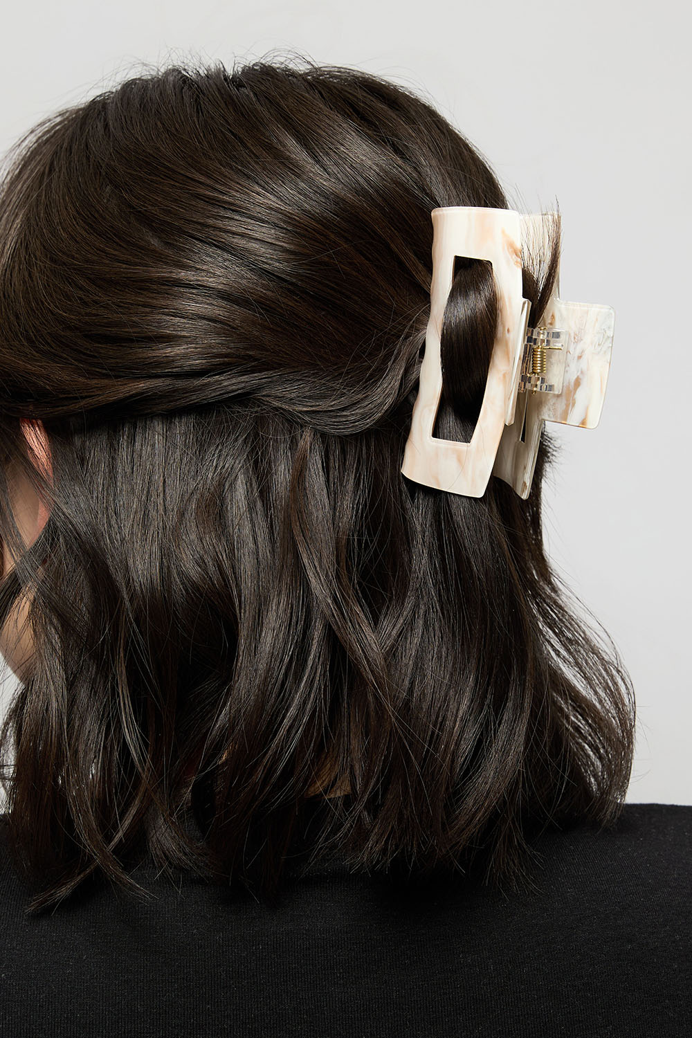 Brun og hvit melert hårspenne i rektangulær form med ekstra utskjæring.