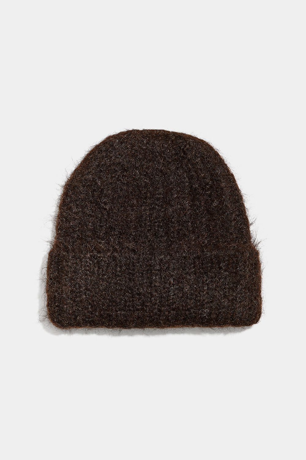 Brun ribbestrikket lue i ullblanding i gruppen Accessories / Strikket / Luer hos Glitter (171001398200)