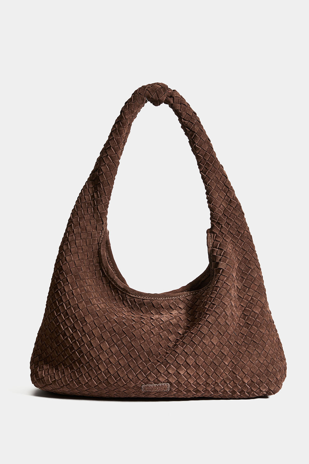 Brun veske i semsket skinn med flettet tekstur