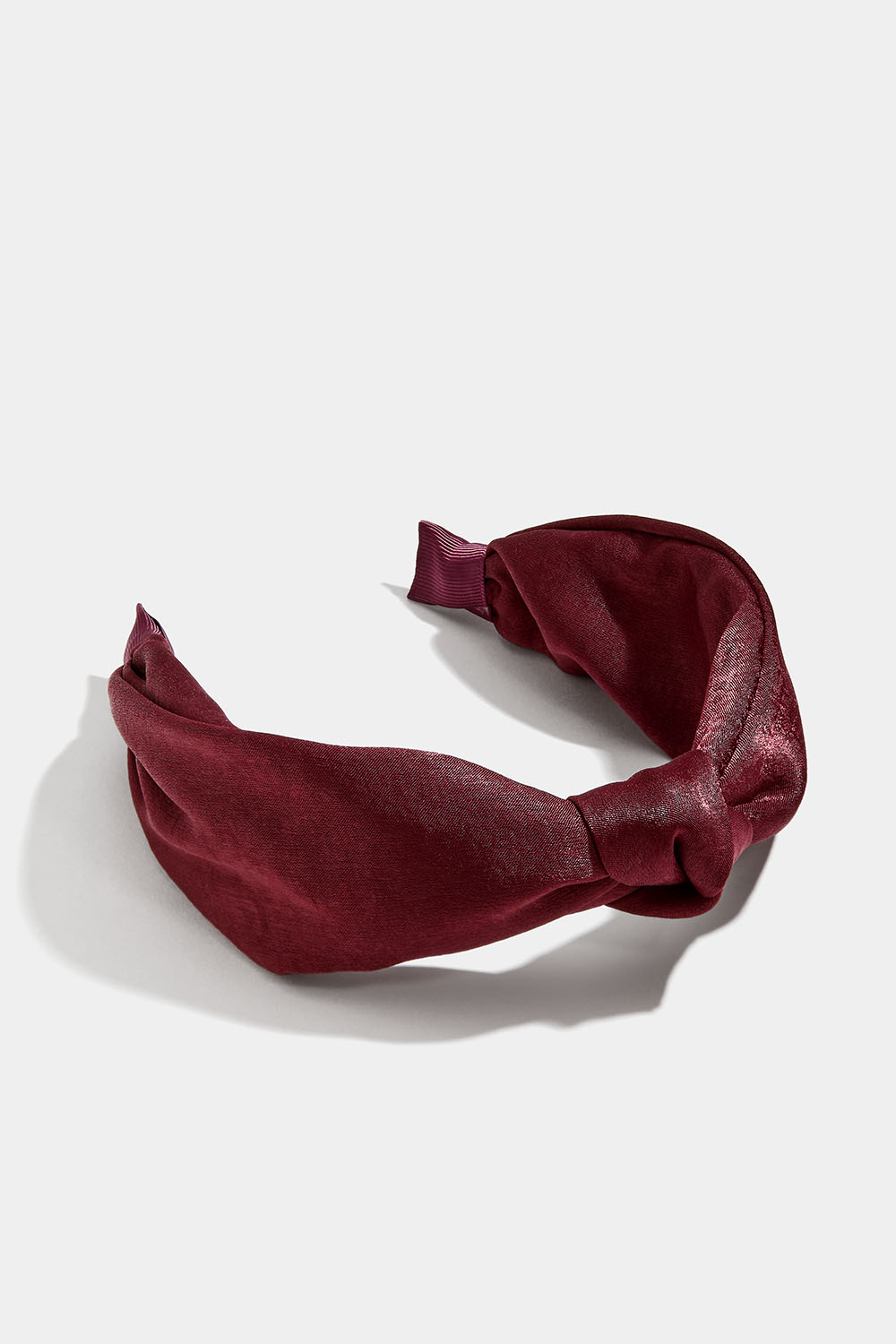 Bred hårbøyle med knute i skimrende, vinrødt stoff.