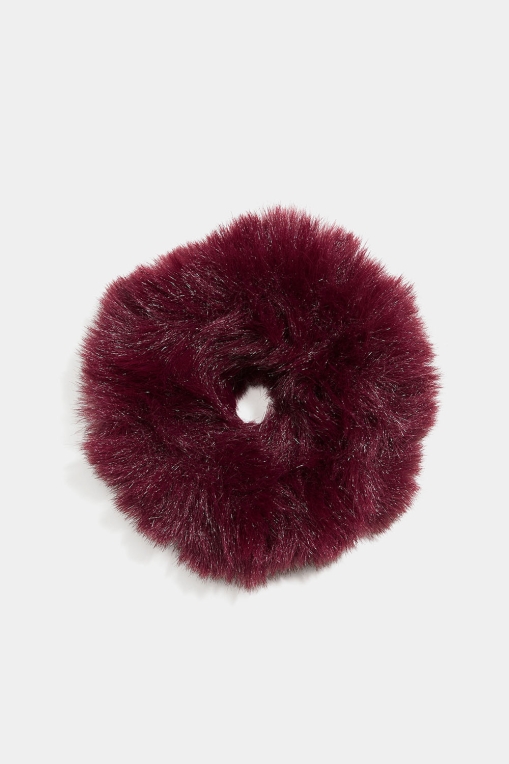 Myk og fluffy scrunchie i burgunderrød fuskepels.