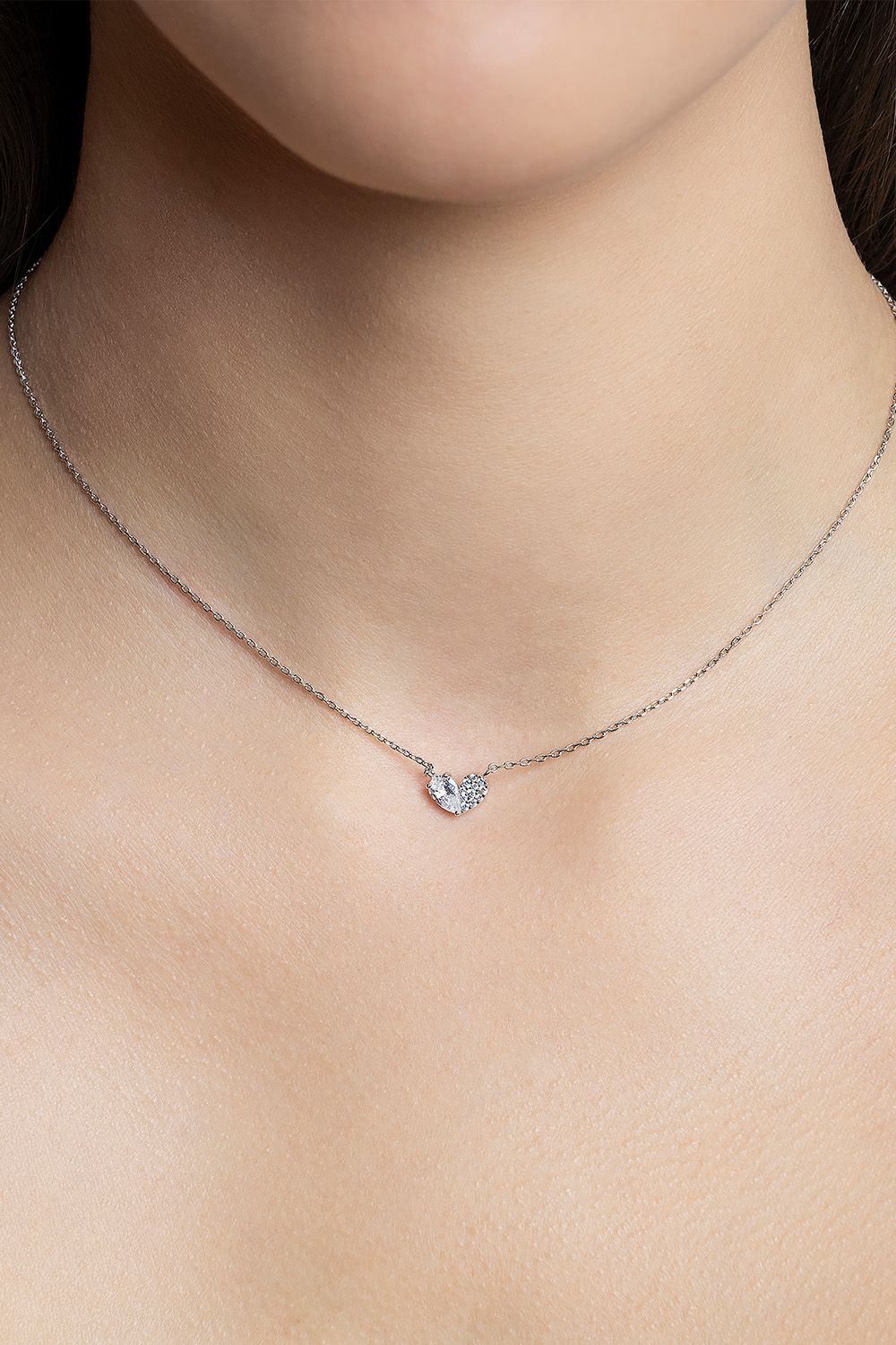 Vårt Charlotte-halsbånd har en elegant dråpeformet stein sammen med en delikat klynge av skimrende krystaller, nøye arrangert i form av et hjerte. Et tidløst smykke laget for å feire kjærligheten.