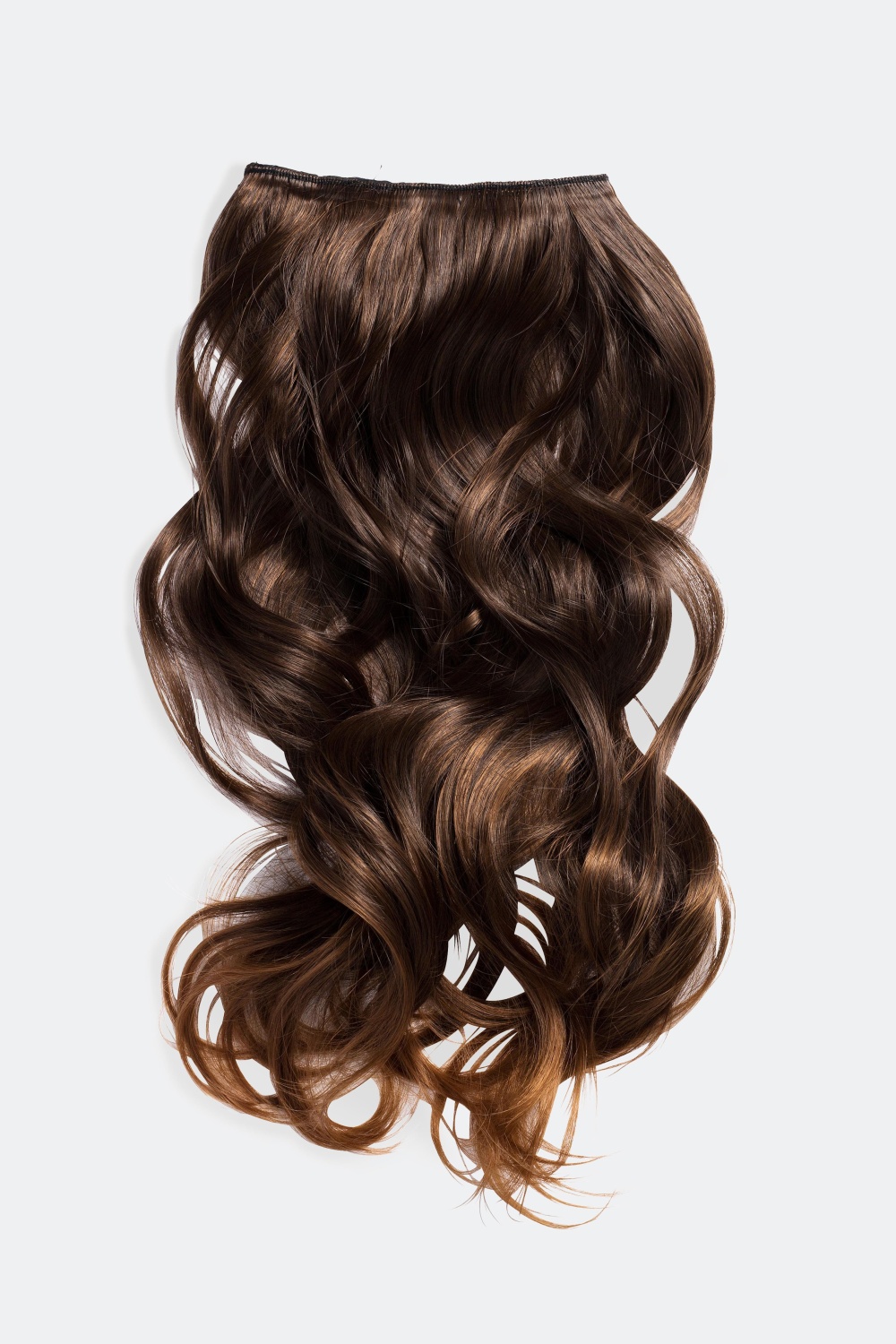 Løshår clip- in, krøllete - syntetisk løshår. Vaskes med sjampo og lunkent vann. Klem ut vannet forsiktig. Dypp så håret i en blanding av vann og litt tøymykner. La håret drypp tørke. Bruk ikke balsam.