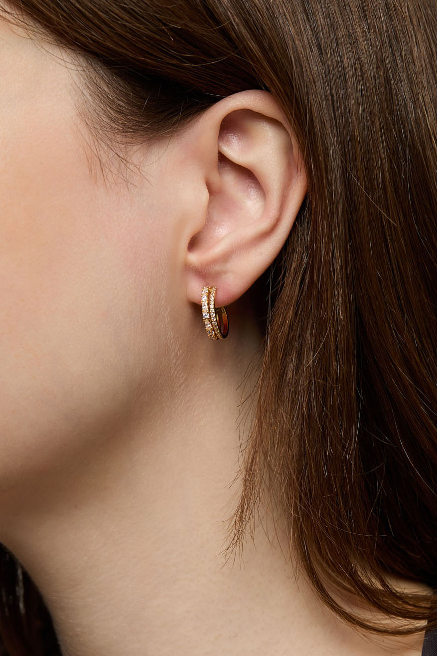 Doble hoops i 18k gullbelagt ekte sølv med kubisk zirkonia