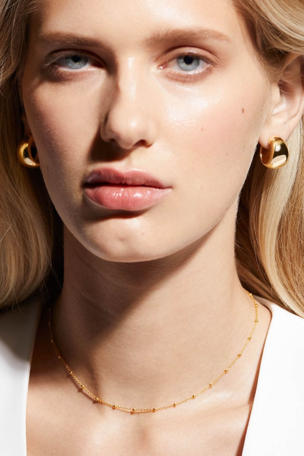 Chokerkjede med små kuler forgylt med ekte 18k gull og med en kjerne av ekte sterlingsølv 925.