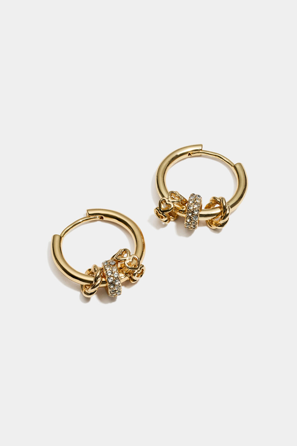 Klassiske øreringer i gullfarget metall med tre runde charms i ulik design.