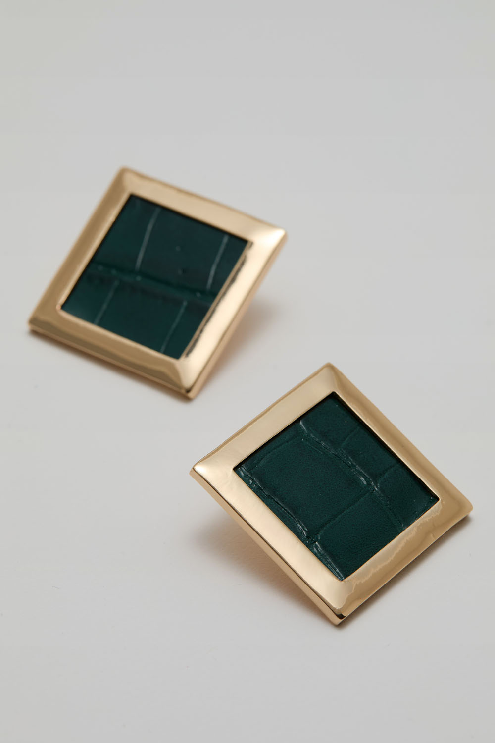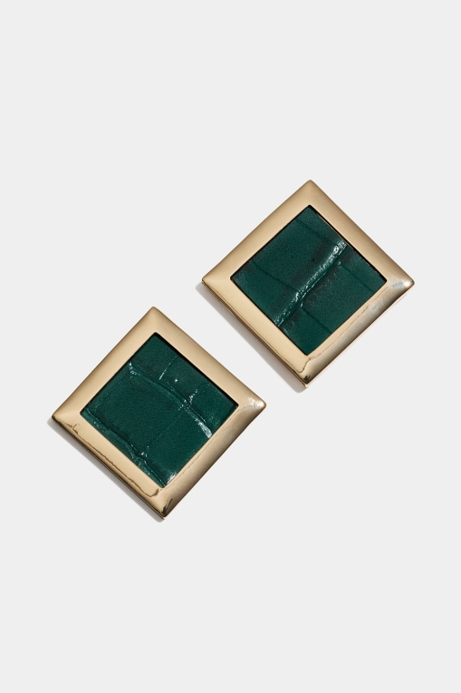 Firkantede øredobber med grønt kunstskinn i gruppen Smykker / Øredobber / Studs hos Glitter (253009897502)