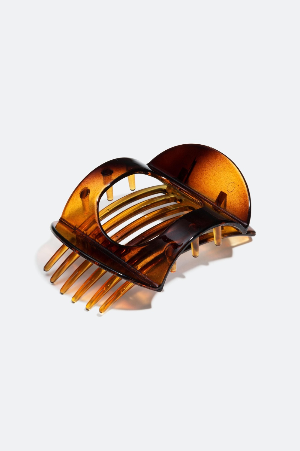 Flat hårklype 8cm, stor - Denne hårklypen er perfekt når du vil sette opp håret raskt. Klypen har et design som følger formen på hodet, som gjør at den kjennes svært behagelig når du har den på. Du kan for eksempel sitte med hodet inntil en stol uten at noe stikker i bakhodet. Du fester klypen inn fra siden, og på innsiden av klypen er det pigger som gjør at den sitter godt fast i håret.