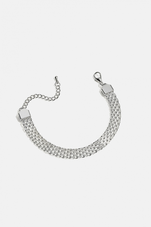 Flatt kjedearmbånd i metall med ledd som sitter tett sammen.