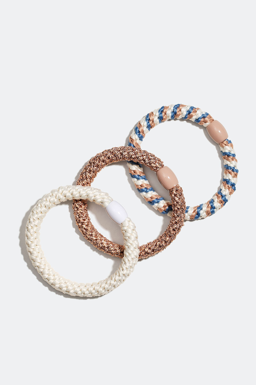 Flettede hårstrikker i hvit, beige og blå miks, 3-pakning i gruppen Håraccessories / Hårstrikker / Flerpakning hos Glitter (332000423401)