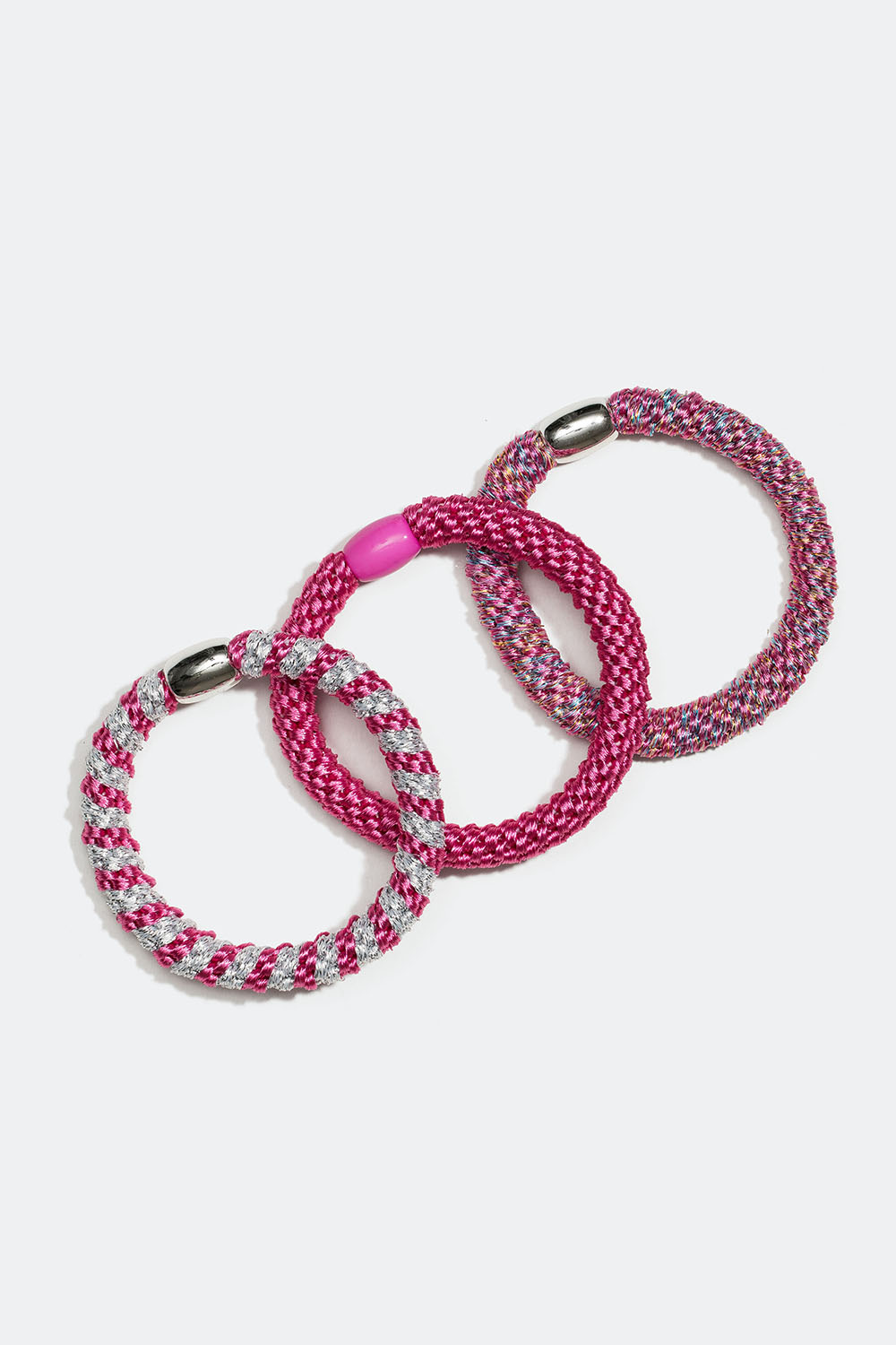 Flettede hårstrikker i rosa og sølv, 3-pakning i gruppen Håraccessories / Hårstrikker / Flerpakning hos Glitter (332000425400)