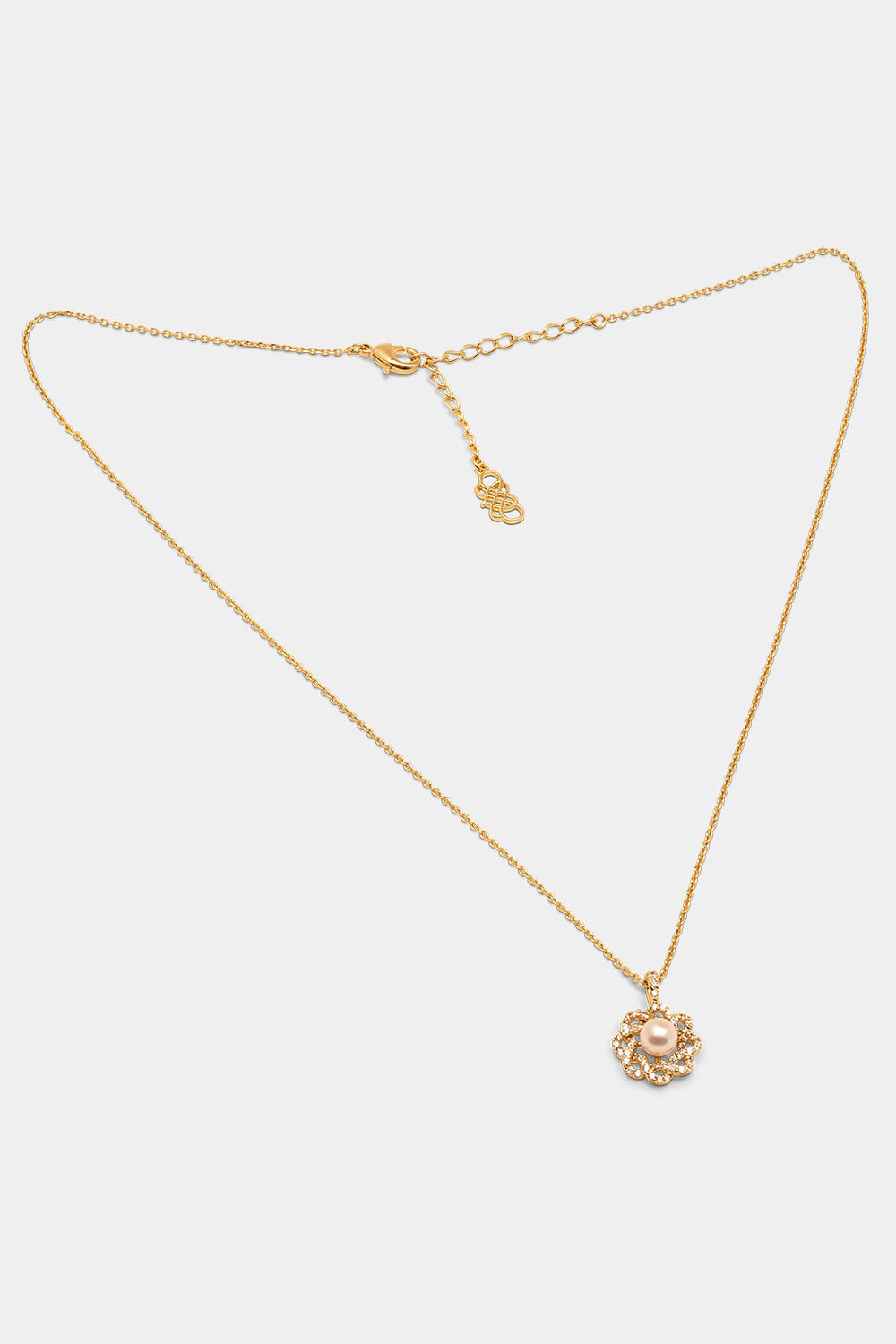 Fleur-kjedet vårt har en strålende rosefarget perle i midten, innrammet av delikate bladdetaljer dekorert med små klare steiner. Et tidløst og elegant design, perfekt for både hverdag og fest.