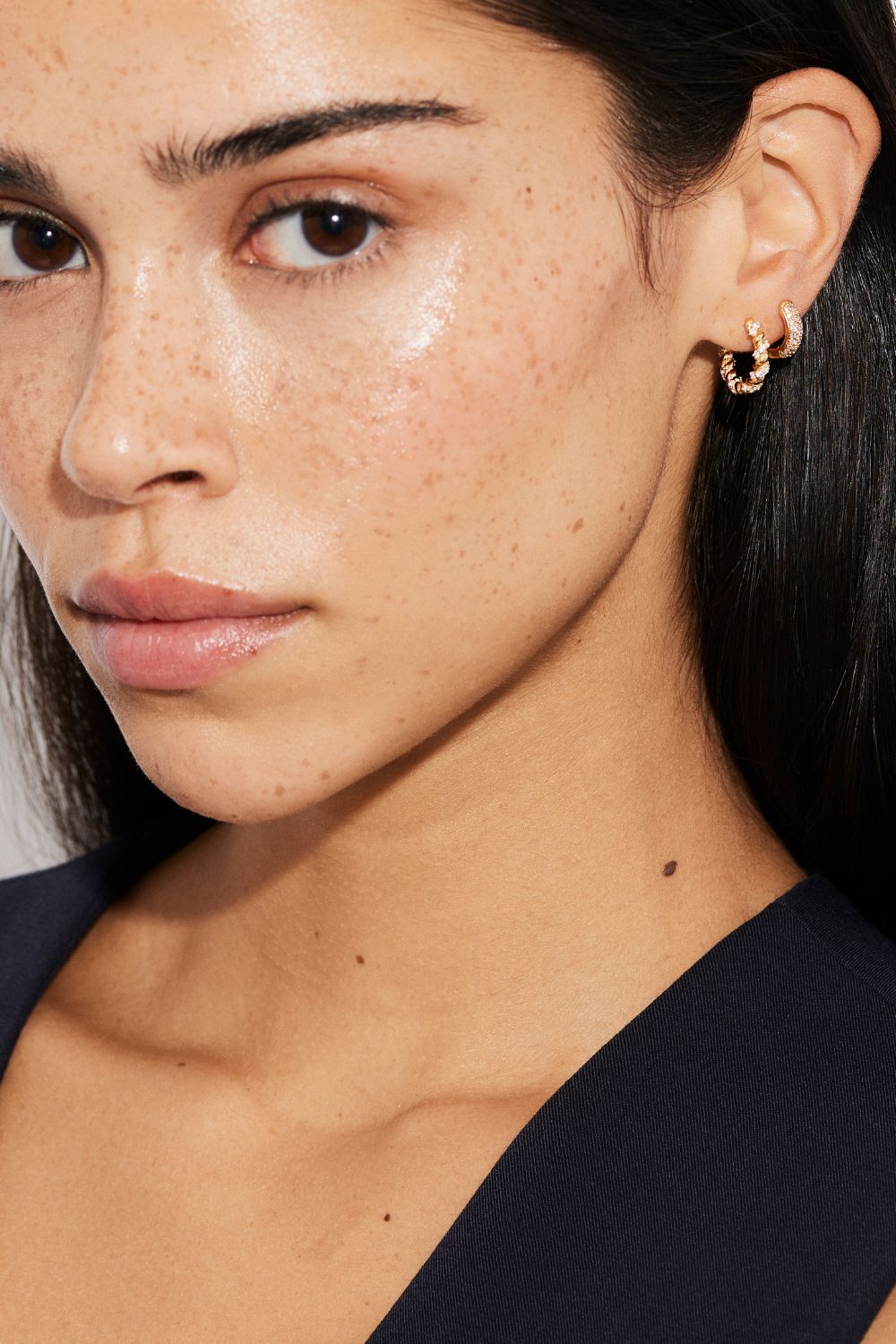 Tvunne øredobber pyntet med klare Cubic Zirconia-stener, forgylt med ekte 24k gull og med en kjerne av ekte sterlingsølv 925.