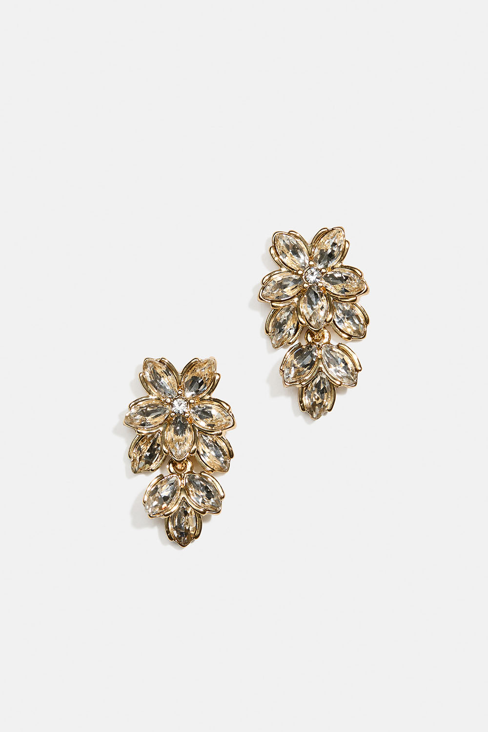 Gullfargede øredobber med blomster, glassteiner og blader i gruppen Store week / hos Glitter (253010270202)