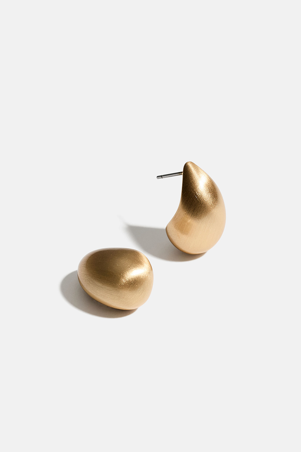 Gullfargede, dråpeformede øredobber med børstet overflate