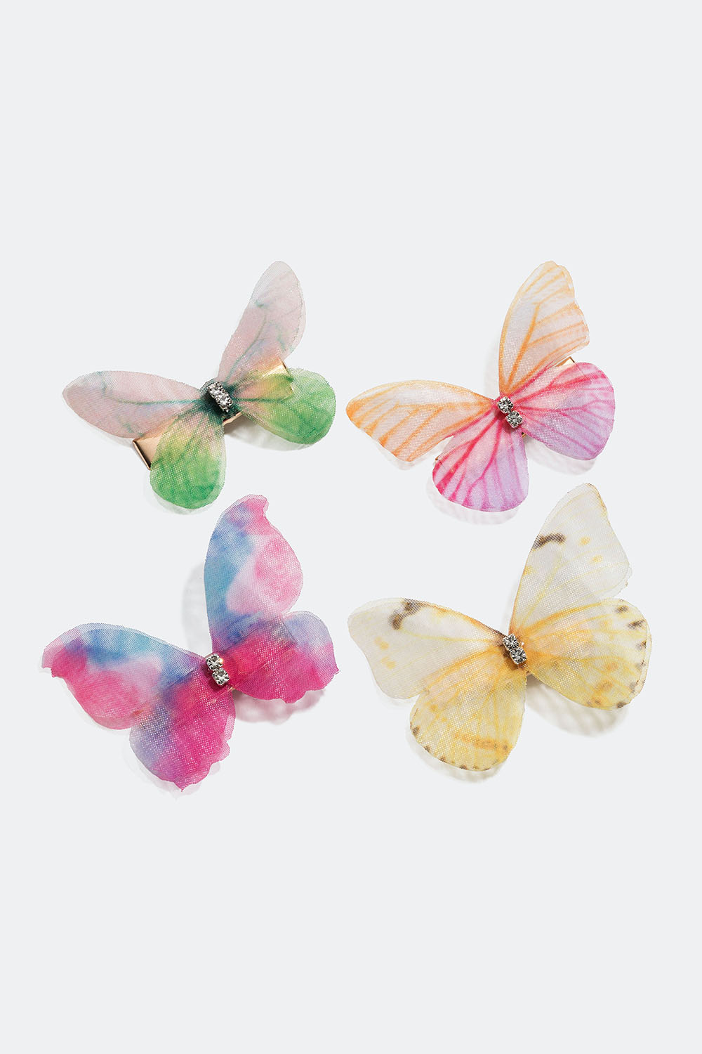 Gullfargede hårspenner med sommerfugler i forskjellige farger, 4-pakning