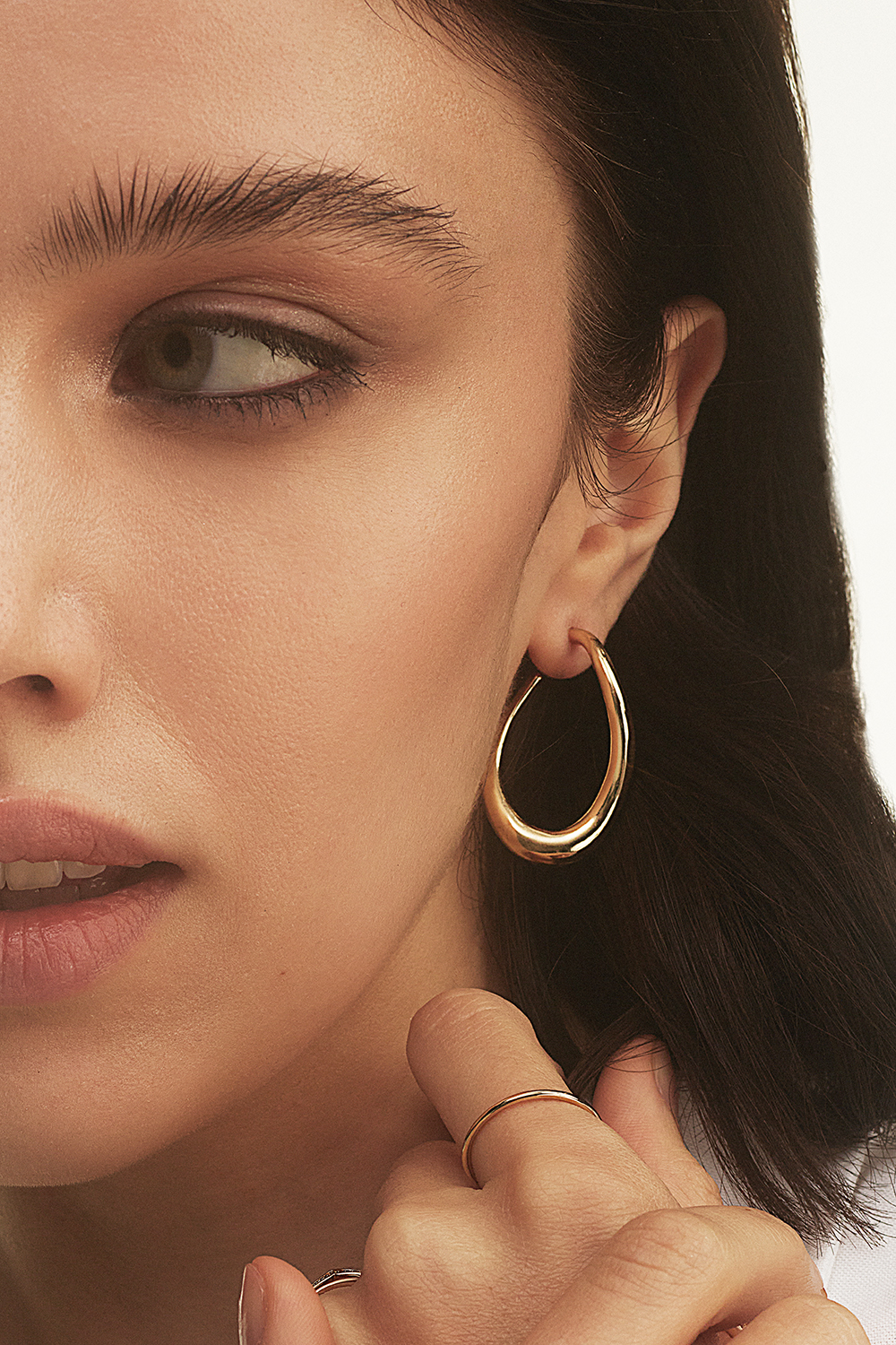 Hoops i gullfarget metall med svungen form.
