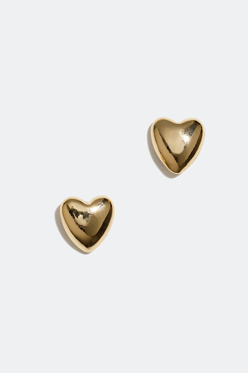 Små, dekorative hjerteformede øredobber i blankt gullfarget metall. Et par stilrene øredobber som passer perfekt til hverdags og fest.