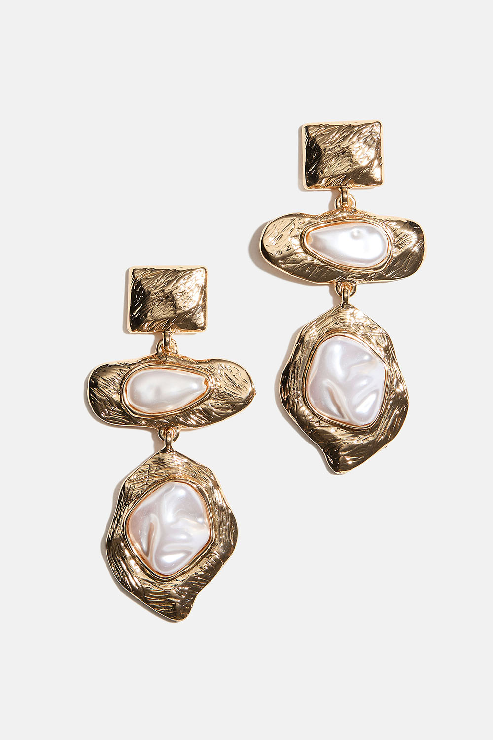 Gullfargede øredobber med hvite perler i organiske former i gruppen Smykker / Øredobber hos Glitter (253011282002)