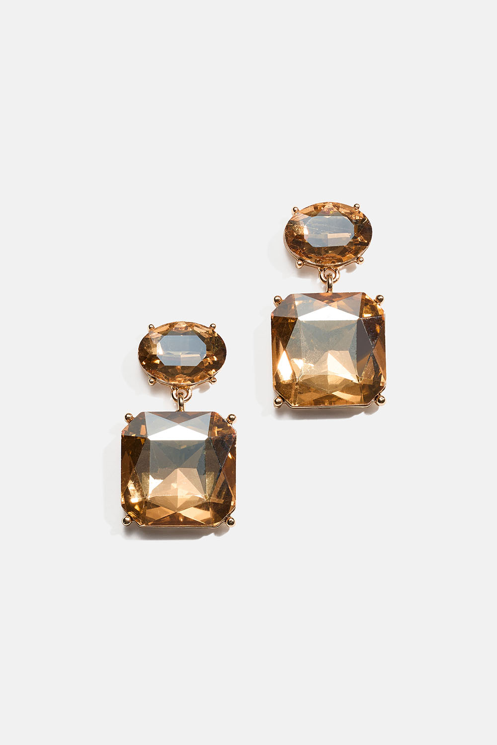 Gullfargede øredobber med ovale og firkantede glassteiner