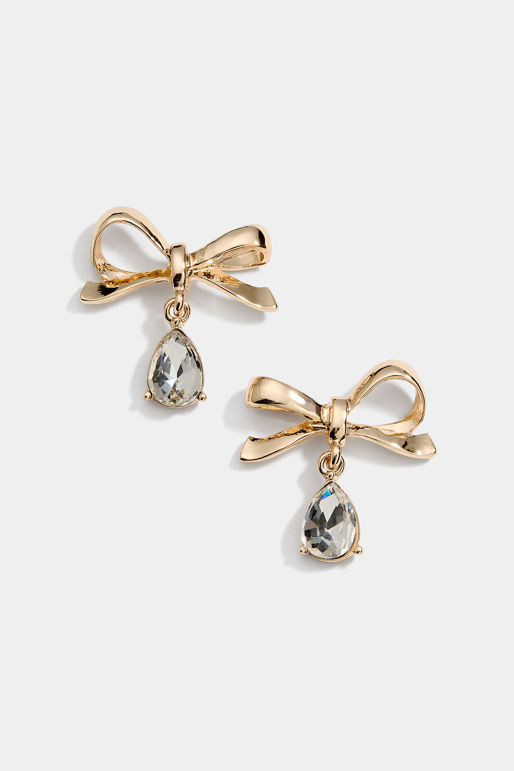 Gullfargede øredobber med sløyfer og hengende glassteiner