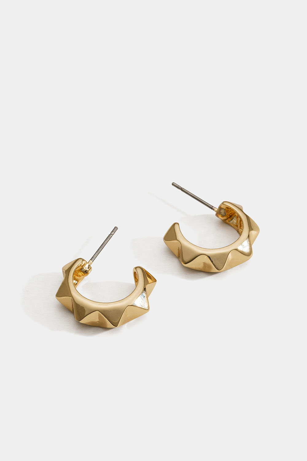 Små, gullfargede øreringer i metall med pigger.