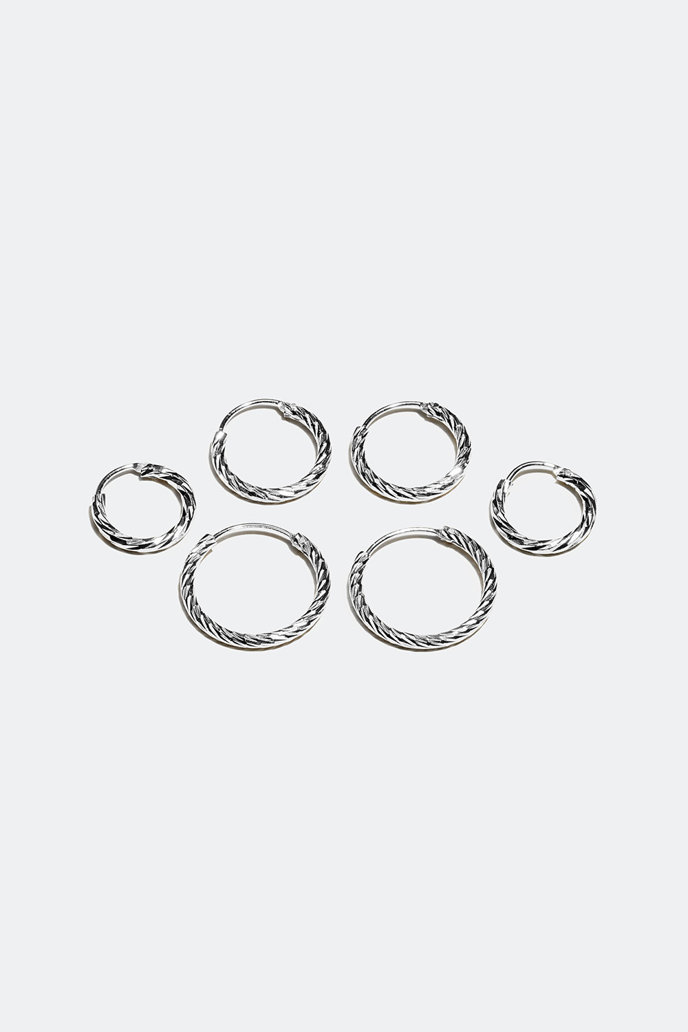 Flerpakning gullfargede øreringer i tre forskjellige størrelser, med struktur. Fine å matche med hverandre eller med andre øredobber. Kommer i fargene gull og sølv.