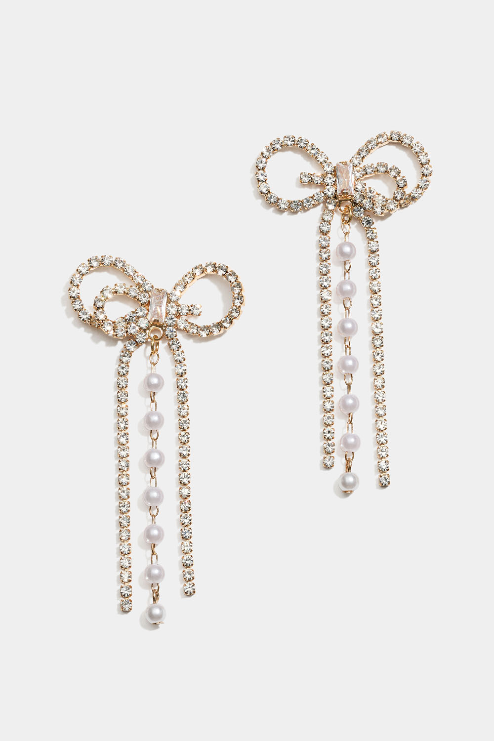 Gullfargede sløyfeøredobber med strass og perler i gruppen Smykker / Øredobber / Flerpakning hos Glitter (253007850202)