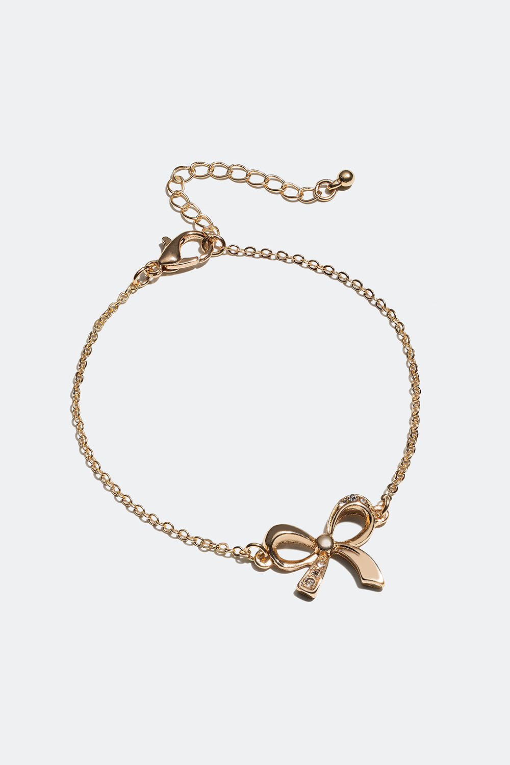Gullfarget armbånd med sløyfe og glassteiner i gruppen Smykker / Armbånd / Tynne hos Glitter (251001162002)
