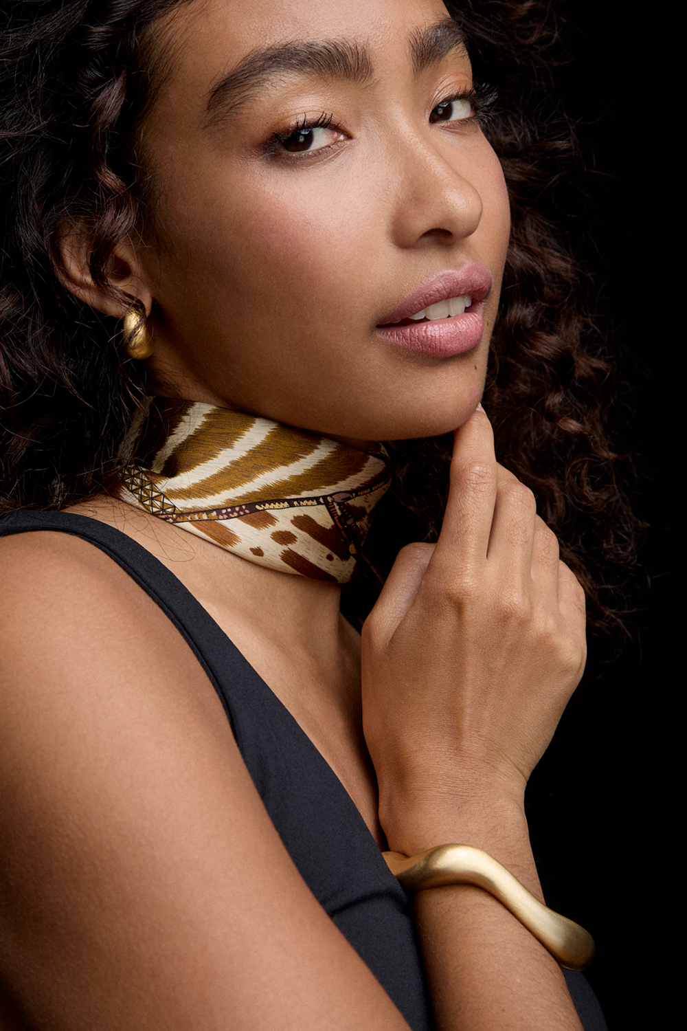 Gullfarget bangle-armbånd i bølgeform med børstet overflate