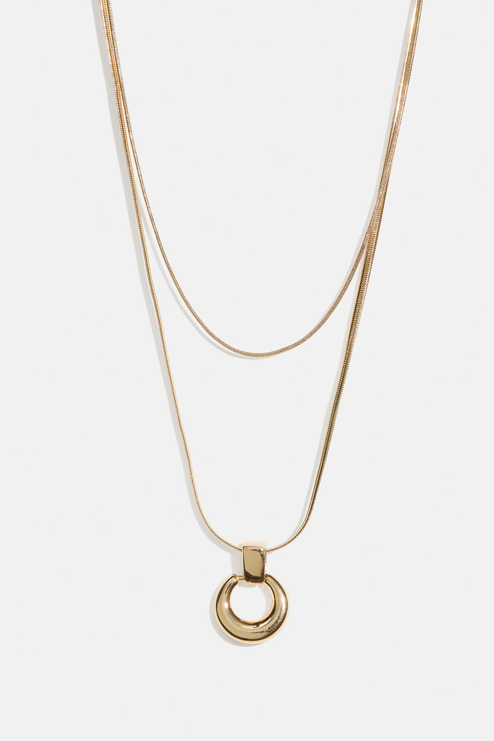 Gullfarget dobbelt halskjede med rundt anheng